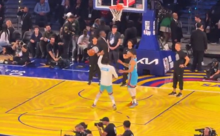 2月17日讯 NBA全明星正赛决赛,奥尼尔队41-25战胜巴克利队,库里当选AMVP。赛后,欧文接受了采访,谈到了自己赛前和库里的交流。