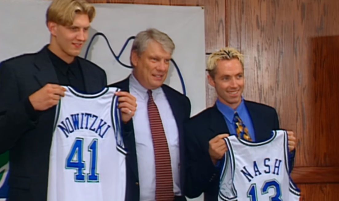 然而,事情并未如预期般发展。三个顺位之后,独行侠管理层真正心仪的新秀——德克-诺维茨基被雄鹿截胡,一位来自德国维尔茨堡、身高2.13米、投篮精准的20岁年轻人。当诺维茨基的名字被叫到时,温哥华的通用汽车体育馆内响起了嘘声,这可能是因为诺维茨基当时还没多少名气,也可能是因为一些NBA球迷对欧洲球员抱有偏见,认为他们球风偏软、速度缓慢。