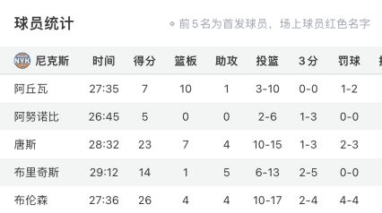 惊!尼克斯首发五虎三节打卡!人均出场时间仅20+:“感谢骑士”