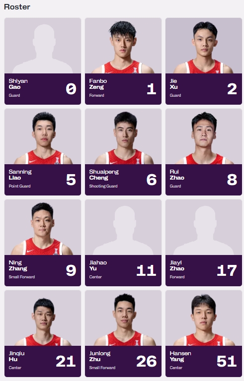 后卫:赵睿、高诗岩、徐杰、廖三宁、程帅澎;