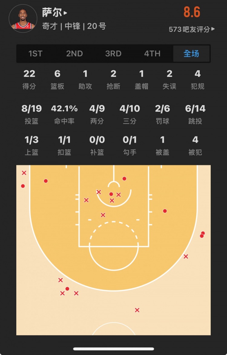 马刺4号秀 斯蒂芬-卡斯尔 登场13.0分钟
