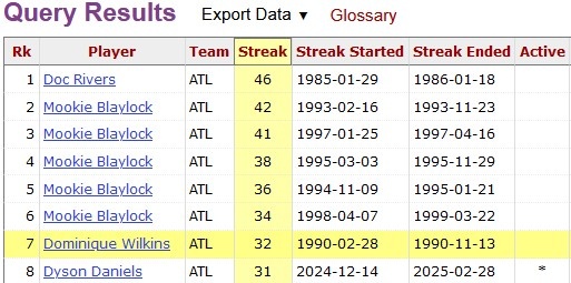 而连续32场抢断在老鹰队史上能排到并列第7,排名第一的是现雄鹿主帅道格-里弗斯的46次!