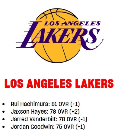 湖人球员2K能力值更新:海斯+2至78 八村&古德温+1 范德彪-1