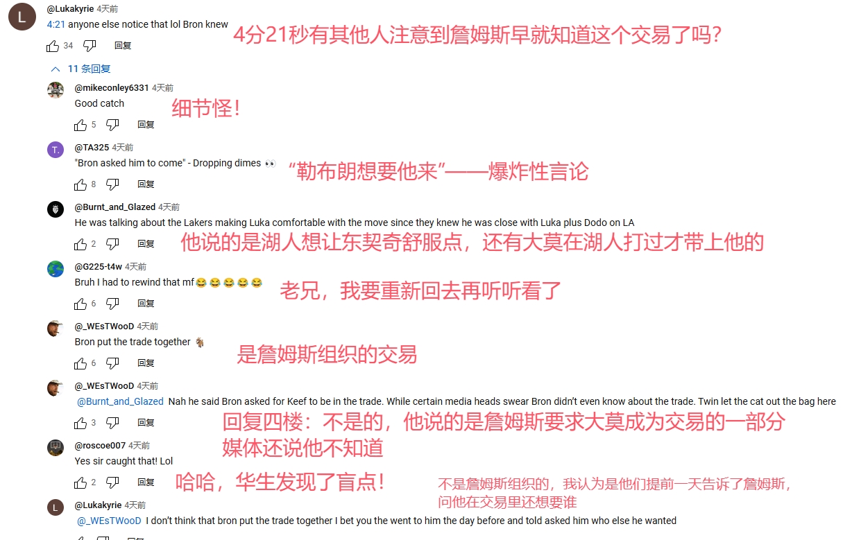 该节目评论区有网友抓住了莫里斯说的“湖人很想他来,詹姆斯也想要他来。”一句话,表示:“难道詹姆斯早就知东契奇交易?”
