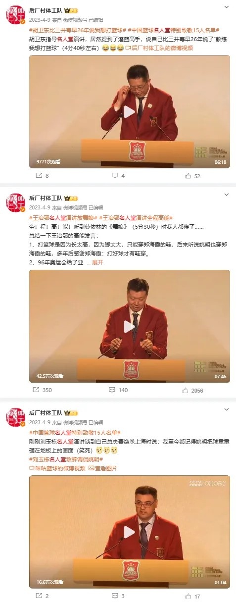 两年前中国篮球名人堂第一次办入堂仪式时,我还在老东家为后厂村体工队玩命,那会我一边录屏抢时间抢话题,一边隔着屏幕感受着那种“新的文化争在建立”带来的轻松气氛: