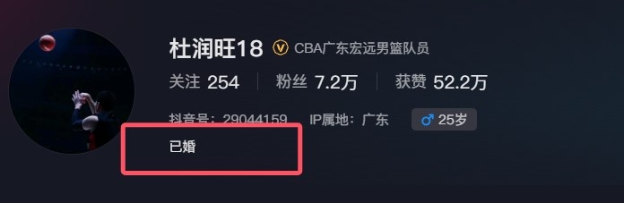 闷声干大事!杜润旺社媒简介显示“已婚” 目前正跟随男篮集训
