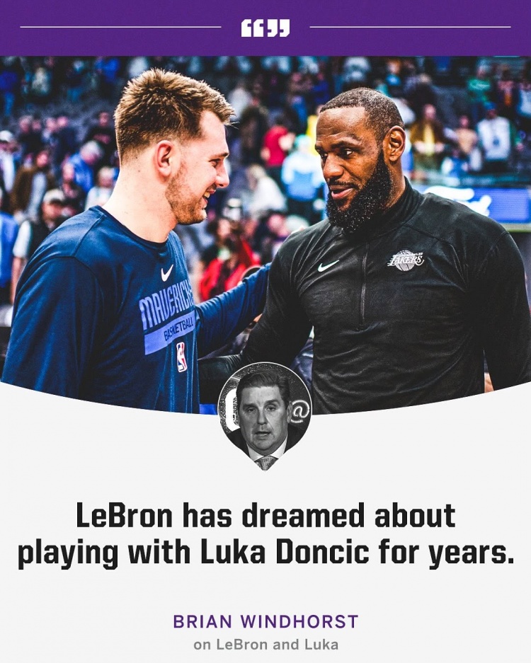 Windhorst:詹姆斯想和东契奇合作已经好几年了 他特别特别想 2月2日讯 据此前Shams报道,东契奇+克莱伯+莫里斯去湖人,独行侠换来浓眉+克里斯蒂+2029年首轮!这是一笔三方交易,还涉及到爵士。名记Windhorst在节目中说道:“詹姆斯想和东契奇合作已经 2025/02/02
