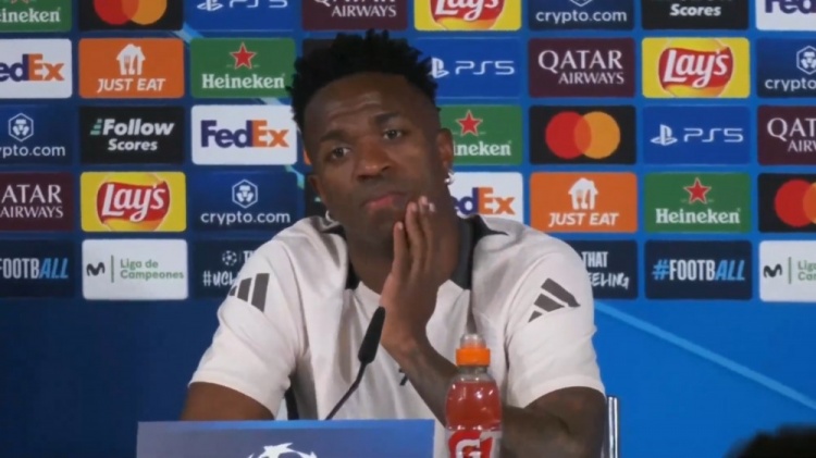 维尼修斯出席对阵马竞的新闻发布会,期间被问了金球奖的话题。