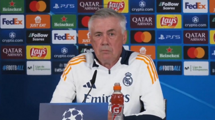 皇马将在欧冠1/8决赛首回合主场迎战马德里竞技。赛前,皇马主帅安切洛蒂出席新闻发布会。