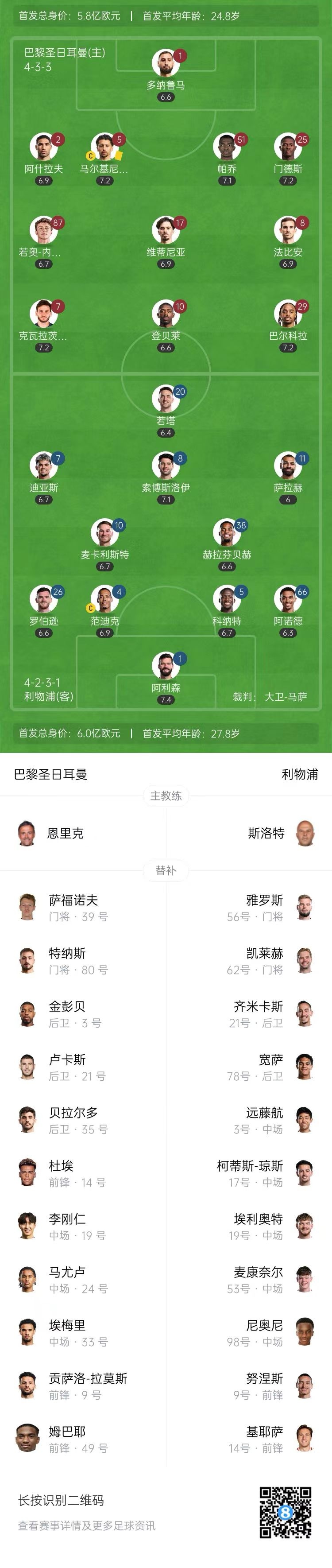 第20分钟,登贝莱开出角球被解围,巴黎前场组织进攻,克瓦拉茨赫利亚得球兜射,皮球直入死角,但克瓦拉茨赫利亚越位在先,进球无效!↓