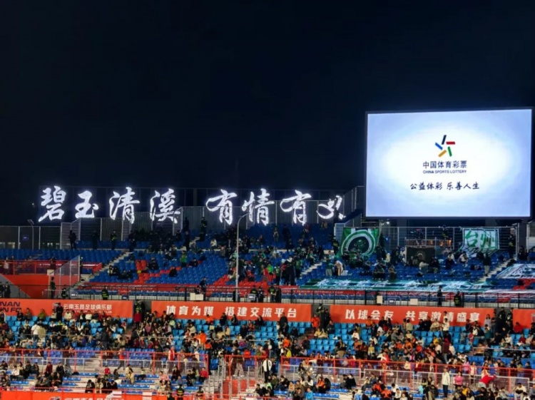 云南玉昆主场比赛期间,现场播放了中国体育彩票的公益短片,展现了中国体育彩票作为国家公益彩票在助力体育事业和社会公益事业发展方面所作出的贡献,讲述了体育彩票所筹集公益金的温暖无处不在。