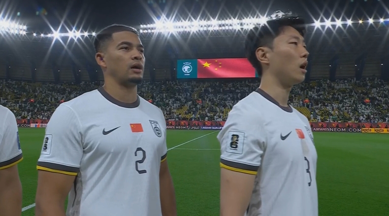 大战一触即发!赛前国歌仪式,国足首发11人高唱国歌