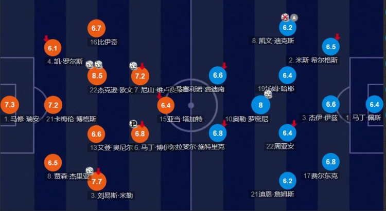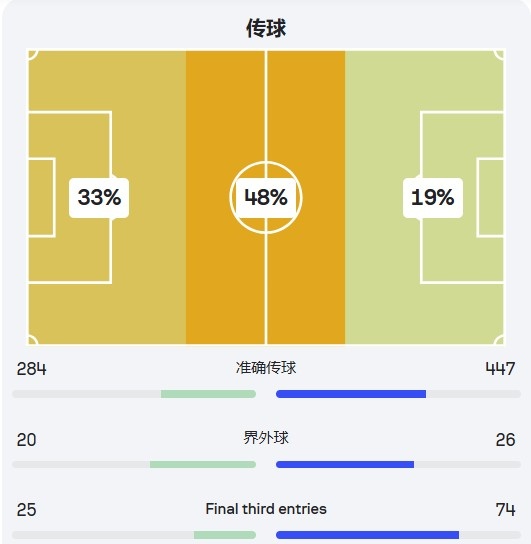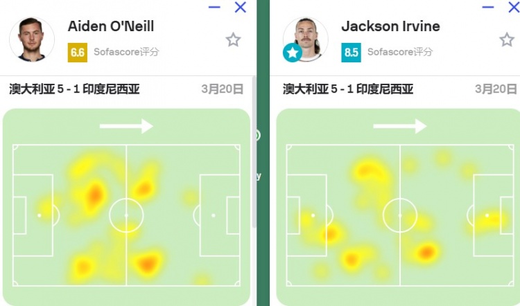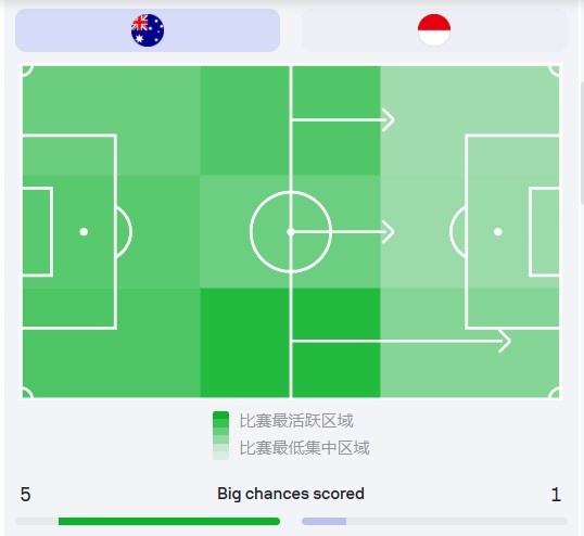 澳大利亚玩的就是效率,控球率、进攻三区进入次数比印尼还少,可比分却是大胜(蓝色方为印尼