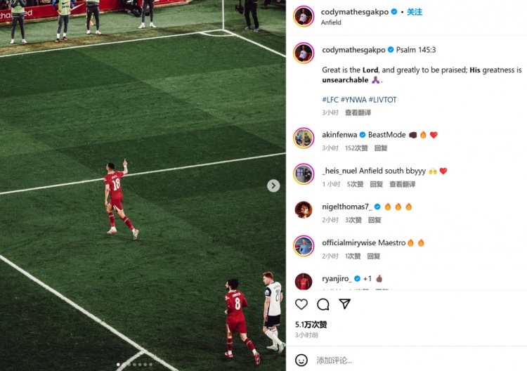 而加克波也晒出自己的比赛照,并附上《圣经》中的内容:“诗篇145:3。耶和华本为大,该受大赞美,其大无法测度。????????”