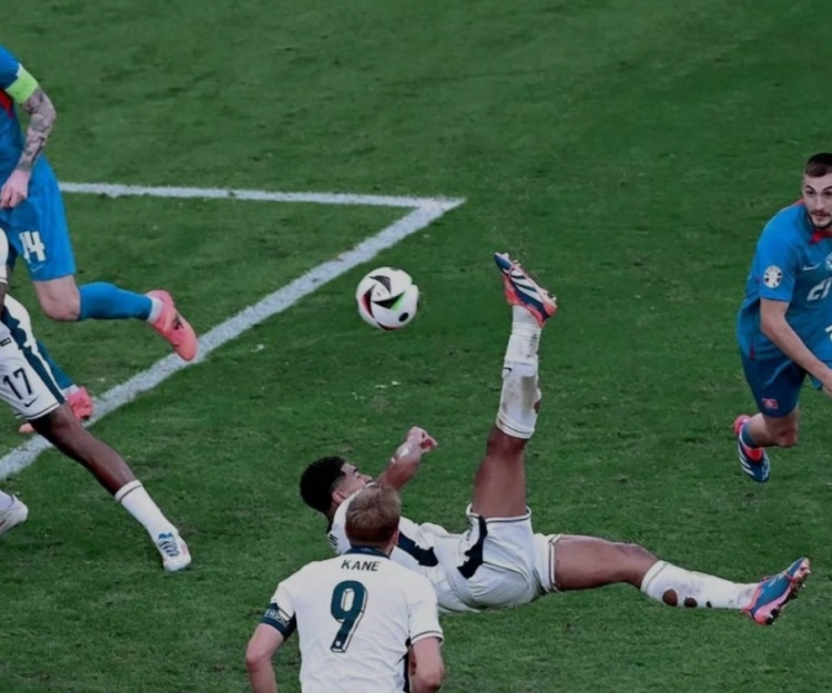 2024年欧洲杯英格兰与斯洛伐克的1/8决赛上,贝林厄姆倒钩破门,那一刻,他和他偶像齐达内一样出众的身体柔韧性、协调性展露无遗。