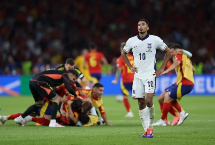 2024年欧洲杯决赛,贝林厄姆铩羽赛场。失利之后,贝林厄姆心怀不甘地摘下亚军奖牌。那一幕,齐达内在2006年世界杯决赛上与世界杯擦肩而过的画面仿佛再现绿茵。