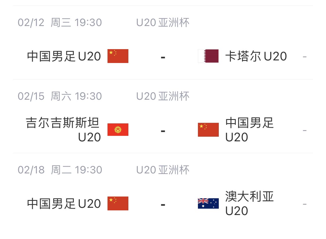 U20亚洲杯-中国vs卡塔尔首发:刘诚宇、王钰栋先发,杜月徵替补