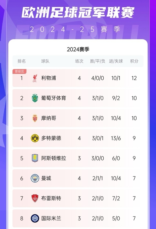 阿莫林带领的葡萄牙体育在欧冠前4轮3胜1平,一度高居欧冠第2位。但是阿莫林离队加盟曼联之后,葡体小组赛4轮不胜跌至第23名,在淘汰赛附加赛首回合主场0-3不敌多特后,已接近被淘汰。