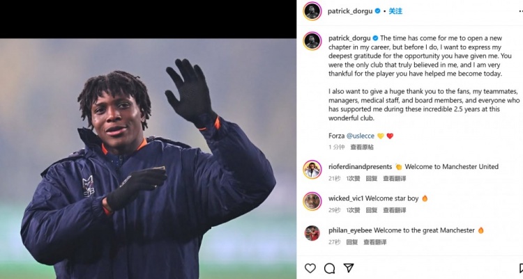 曼联新援多古社媒告别莱切:感谢过去2年半所有人对我的支持 2月3日讯 曼联在此前已经官宣签下翼卫多古,后者也通过社媒发文告别老东家莱切。多古表示:“是时候开启职业生涯的新篇章了。但在那之前,我想对你们表达我最真挚的感谢。你们曾是唯一真正相信我的俱乐部,我非常 2025/02/03