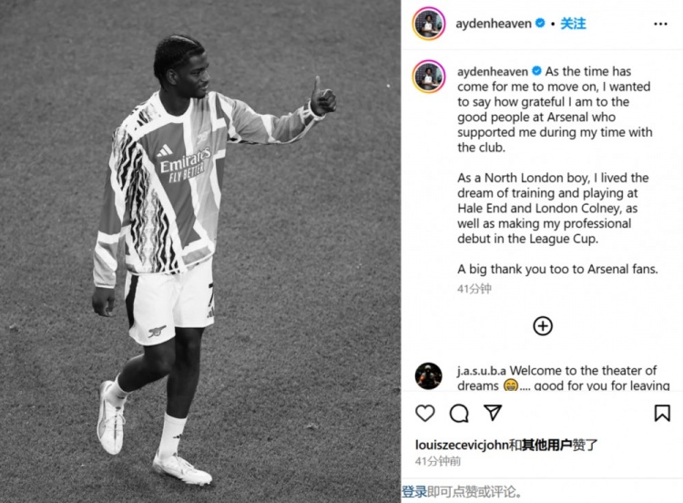 海文告别枪手:作为北伦敦男孩,我实现了在这里训练和比赛的梦想 2月1日讯 18岁中卫埃登-海文更新社媒,告别阿森纳。2月1日,曼联官方宣布,球队签下阿森纳的18岁中卫埃登-海文,双方签约至2029年。海文在本赛季早些时候曾首次代表阿森纳出场,并曾代表英格兰U19 2025/02/01
