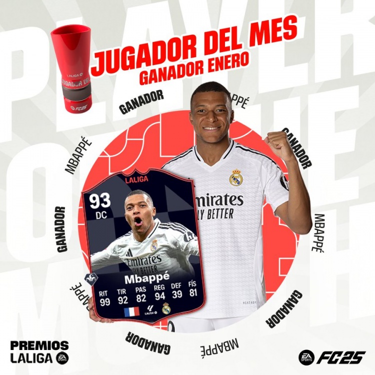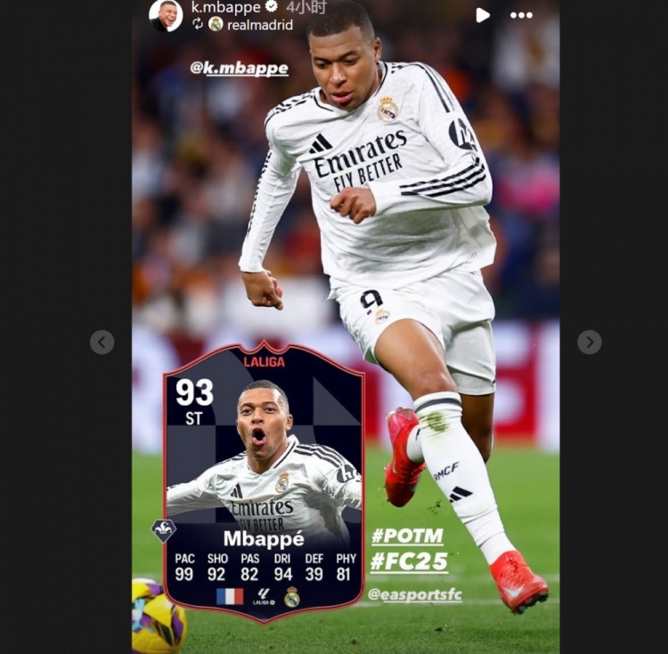 3场5球被评为西甲1月最佳球员!姆巴佩社媒转发纪念 2月1日讯 西甲官方在今日公布了1月最佳球员,皇马前锋姆巴佩当选。姆巴佩在1月为皇马出战3场西甲打进5球,这也是他首次获评西甲月最佳球员。姆巴佩也通过社媒转发了相关动态作为纪念,并配上“月最佳球员”的 2025/02/01